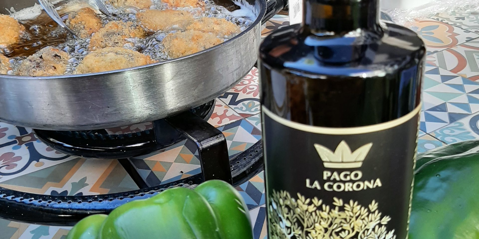 Durante las diversas intervenciones, se cocinaron dos de las croquetas ganadoras de la segunda edición del concurso, por parte de sus artífices, Mario Cobretti y Fernando Jarauta, para, al concluir el acto, ofrecer una degustación. El aceite para su fritura fue Pago La Corona Mélange que es perfecto también para la sartén, dado que no se apodera del sabor de los alimentos y por ser AOVE no penetra tanto en los alimentos, los empapa menos, por lo que se obtienen unas croquetas sabrosas, menos aceitosas y con menos calorías (que si se hubieran utilizado otros aceites, que no fueran de oliva virgen).